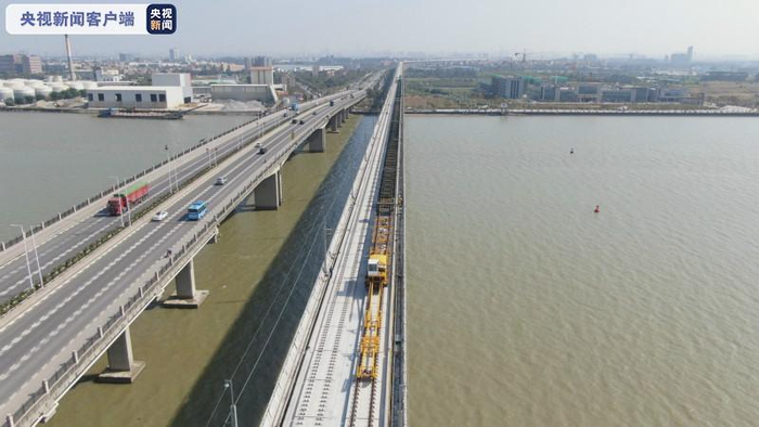 中铁广州工程局佛莞城际铁路四标项目负责人石崇介绍说:“铺轨效率基本上按照每天两公里的速度,预计全线要用四十天,争取在一个月内完成。”