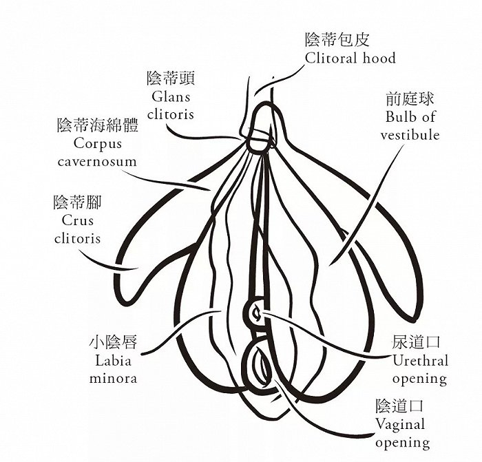 尽管在一般的认知中,阴蒂只是一颗“小纽扣”,但它其实是“整体范围很大,多半位于体内,仅有顶部从外阴部顶端冒出的解剖构造”。
