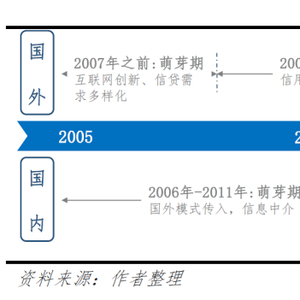 (1)2007年之前,早期萌芽:互联网创新发展和信贷需求多样化催生P2P。全球首家P2P平台起源于英国,英国银行业由5家大型银行垄断,导致个人与企业信用贷款难度较大,手续繁琐、速度慢、门槛高,个人和企业资金的供需匹配效率低。2005年全球首家P2P网络借贷平台Zopa在英国诞生,其定位信息中介,通过向双方收取手续费实现盈利,随后该模式迅速在世界各国复制和传播。美国最具代表性的P2P平台也在这一阶段成立,2006年美国Prosper平台成立、2007年Lending Club成立。