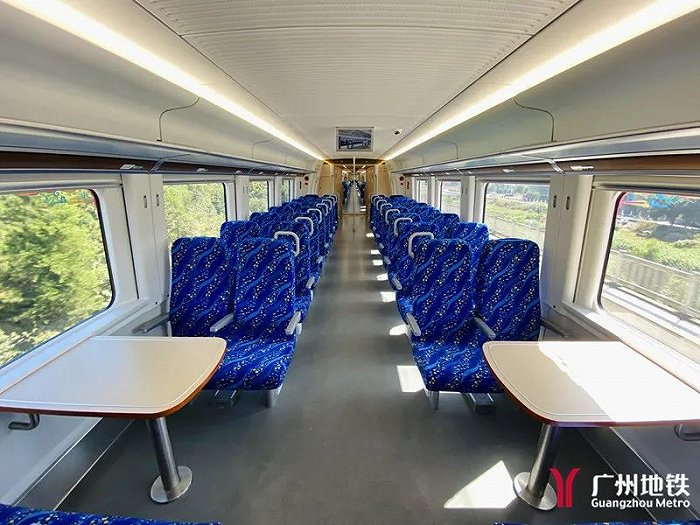这两条城际铁路采用了CRH6A型动车组,列车的座位布局为2+2布局,最大载客量可达1427,乘坐体验上比地铁更舒适。