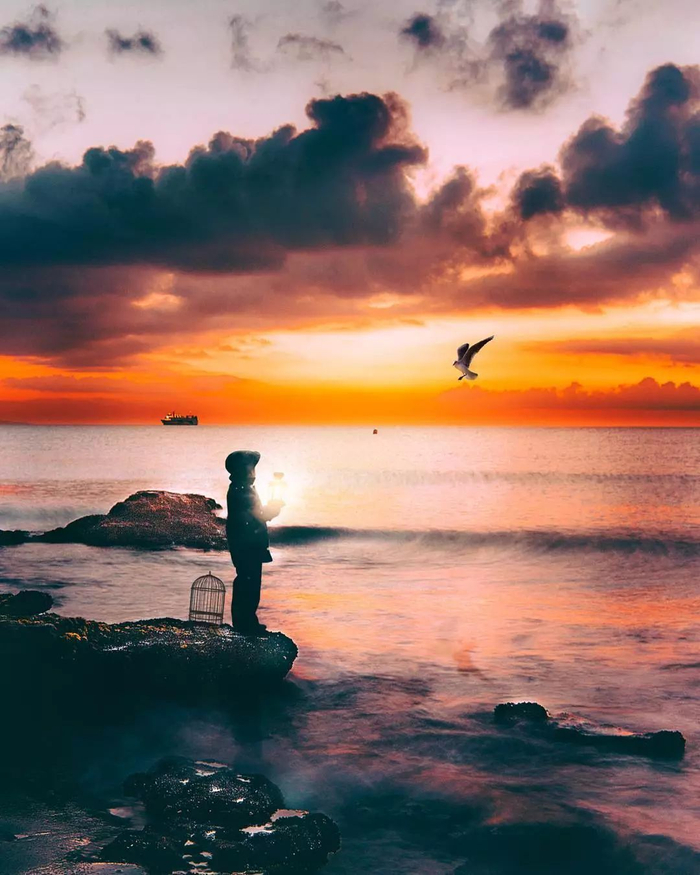 他是个老人,独自划着小船,在湾流中捕鱼;八十四天来,他没打到鱼。