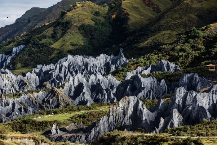 在道孚,墨石公园的土石林层层叠叠、千姿百态,在不同的季节会呈现出不同的颜色,像是走进了科幻世界,置身于外星球的魔幻地貌之中。