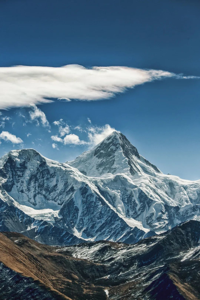 ▲ 贡嘎,位于中国第一、二级阶梯的分界线上,世界上7000米以上的高峰都在贡嘎以西的青藏高原上,东部则是两三千米高的传统名山。