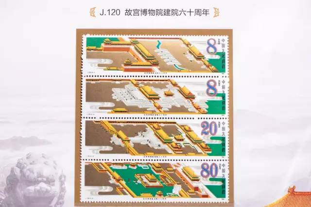 1985年发行的《博物院建院60周年纪念邮票》是2016年经典设计奖提名作品,将故宫建筑群以艳丽的颜色加以还原,光是欣赏,就仿佛让人置身其中。