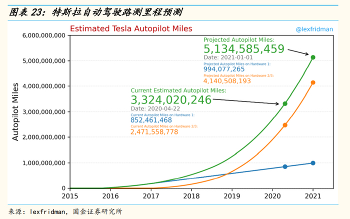 采用虚实结合的路测方针训练自动驾驶算法,每日可模拟100年的技术路测。自2009年7月项目成立以来,Waymo自动驾驶道路测试历程数呈指数级增长,已于2020年6月突破2500万英里。但与特斯拉相比,直接从Level 4 无人驾驶做起的决定使Waymo缺乏极端场景数据积累。2013年,谷歌高级软件工程师詹姆斯·斯托特加入Waymo团队并开发了Carcraft仿真测试技术。截至2020年6月,Waymo已基于Carcraft开发超过2万个模拟场景,模拟驾驶已超150亿英里。