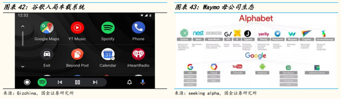 我们认为,在今年Waymo迎来了首轮外部融资后,长期对技术的投入将在近期转化为商业化落地的基础。业务重心自动驾驶出租业务前景广阔,卡车货运业务直击行业痛点,自研硬件设备也能获得一席之地。自动驾驶出租大规模铺开后,有望与母公司的广告、媒体、娱乐业务达成巨大协同,打造具有强烈Alphabet特色的“生活第三空间”。