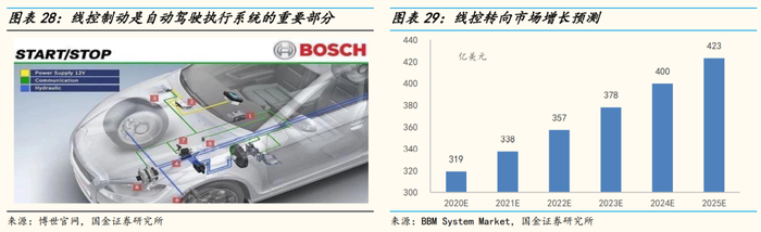 此外,智能化演进中,线控转向要求同步升级。随着自动驾驶级别的提高,汽车将逐渐完全脱离驾驶员的控制,对转向系统的可靠性要求更高、更明确,将成为未来行业突破口。据BBM System Market,全球线控转向市场预计2020-2025年复合年增长率为5.8%,并于2025年达到423亿美元。