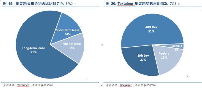 目前全球超过90%的集装箱由中国企业供应,截止2018年底,中国集装箱产能约为550万TEU,生产格局总体比较固定,供给充裕。受贸易量激增和物流效率降低影响,集装箱需求仍将持续,尤其是亚洲到欧洲和美洲的航线。由于目前的租赁合约收益增长,且出租率较高,租箱公司购置集装箱的意愿大增。从Textainer的集装箱租赁结构来看,2021年将有较大数量的集装箱合约集中到期,其中干货集装箱约34万TEU,冷藏集装箱和特种集装箱月2.5万TEU,均为近年来的高点。多家租箱公司预期,2021年集装箱将迎来更换高峰。