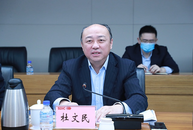 杜文民对潘福书记一行的到访表示热烈欢迎。在介绍了公司总体情况、业务布局、国有资本投资公司试点及混改方面取得的成绩等情况后,他指出,国投集团正在按照白涛董事长提出的“1331”总体构想,坚持做强做优做大国有资本和国有企业,把改革进一步走深走实,以新发展理念、新发展格局,激发新优势,引领高质量发展,加快建设具有全球竞争力的世界一流资本投资公司。他表示,公司一直重视央企间的学习交流和经验分享,期望进一步加强沟通互动,寻求业务合作,实现共同发展。
