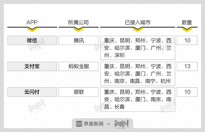 支付公司也在积极接入更多城市的地铁。根据记者统计,截止2020年9月,微信支持10个城市扫码乘地铁,支付宝支持13个,云闪付支持10个。