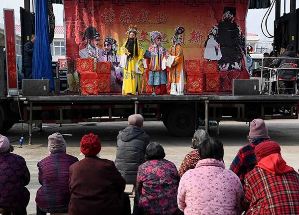 2016年11月28日,河南上蔡县芦岗乡文楼村村民在观看由上蔡县豫剧团的演员们表演的豫剧。新华社记者李安摄
