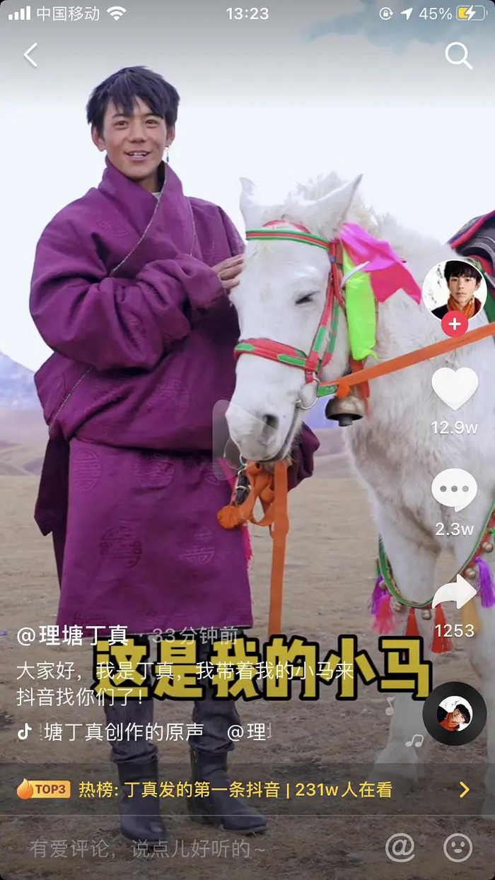 这一次,国企背景(理塘国资委投资)的四川省甘孜州文旅体投资发展有限公司(简称理塘旅投)反应很快,在丁真走红后旋即与其签约,“签约国企,月薪3500元”上了热搜,丁真随后注册的一系列社交媒体账号也都是“理塘丁真”。