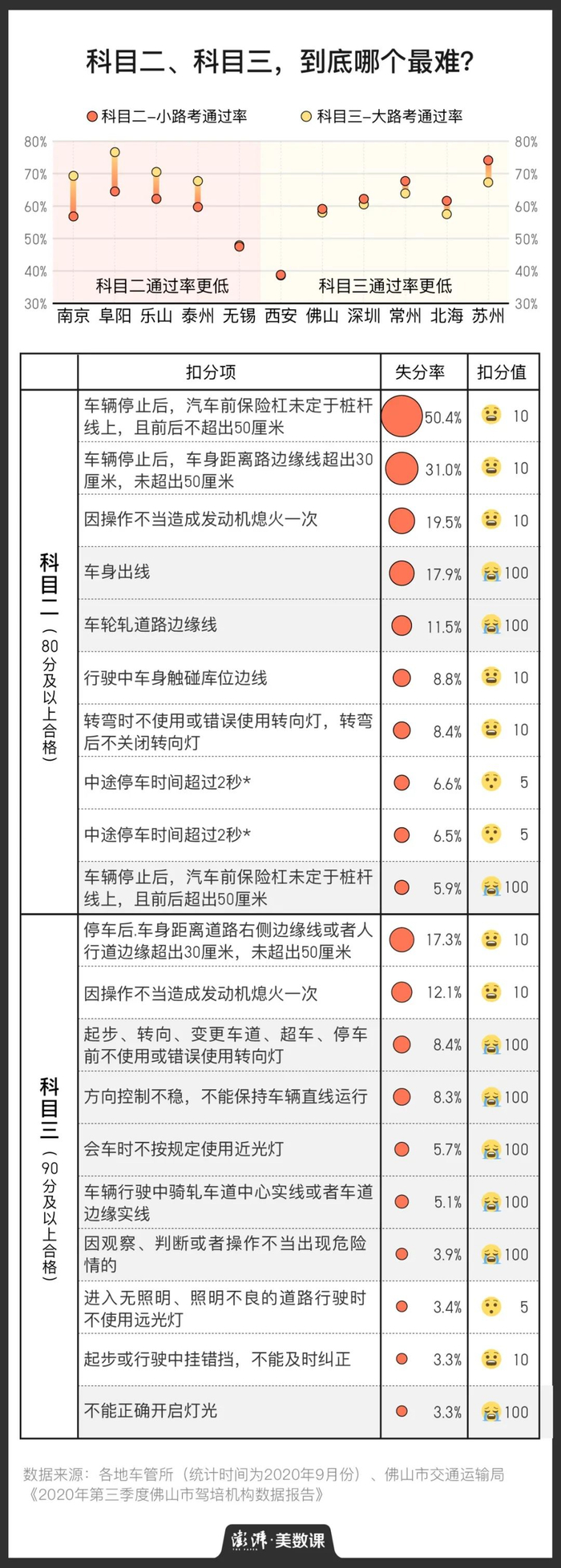 在2020年9月的驾考中,南京、无锡的科目二通过率更低,而苏州、常州则是科目三通过率更低。同在一个江苏省,情况都这么不一致。