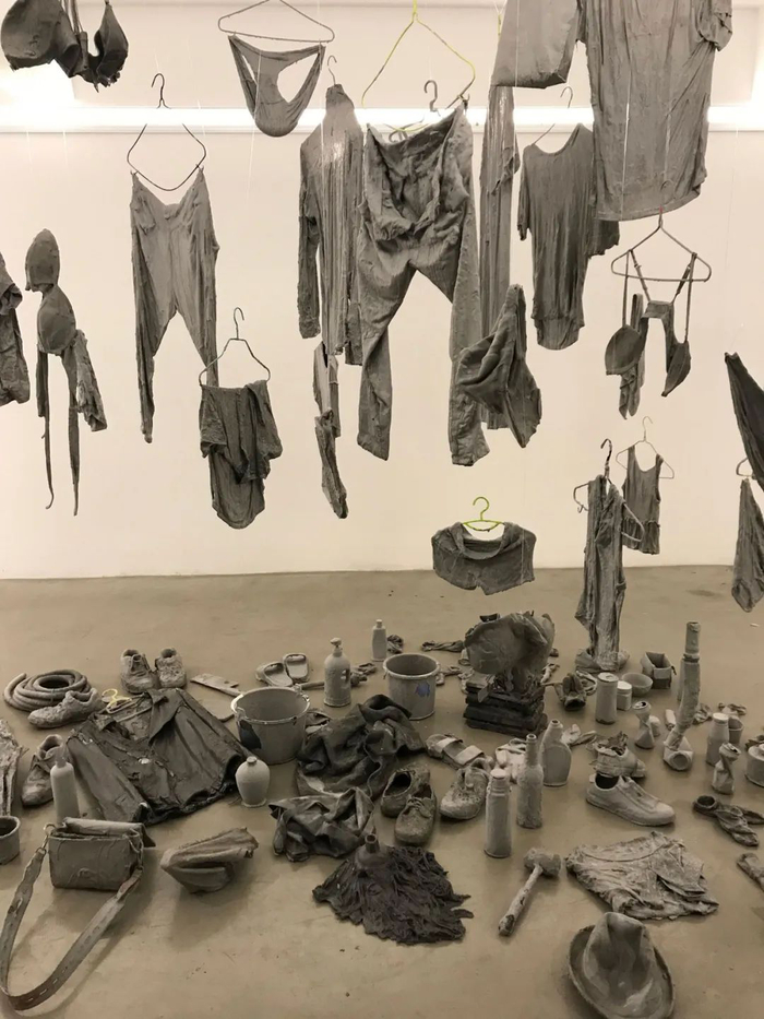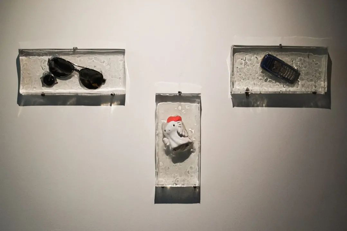 《重新塑造》系列,以水泥来重塑很多我们从鬼城里发现的东西——手套、胶鞋、手机、被子、农民工小孩的玩具。