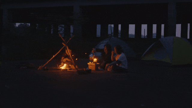鬼城的夜晚并没有鬼,只有充满规律的虫鸣声,一阵起一阵落,没有灯光的照耀,大家收拾完毕就早早进入了帐篷。自称长得像“钟馗”的林超文,一个人守着火堆,他说:“我在这儿守着,兴许会有个女鬼出来陪我聊聊天呢。”