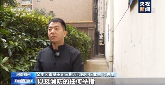 金水区银基王朝三期万和园小区业主 周先生:小区内部根本没有消防车通道,以及消防的任何举措,一旦内部着火以后,只能眼睁睁看着火着起来。