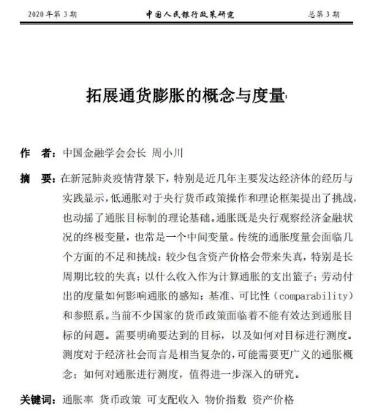 前几天,中国金融学会会长、前央行行长周小川在《中国人民银行政策研究》杂志上,发表署名文章《拓展通货膨胀的概念与度量》。