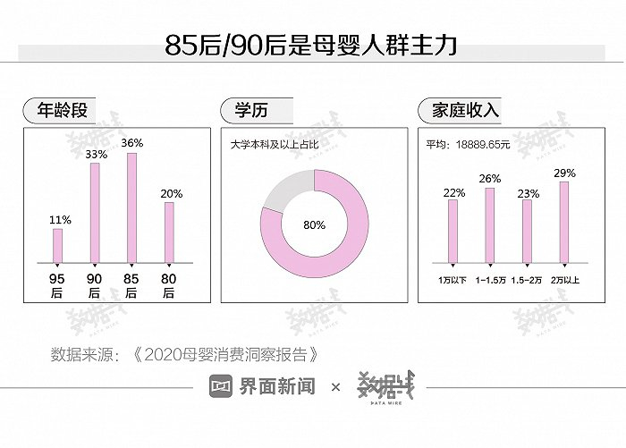 尼尔森发布的《2020母婴消费洞察报告》显示,目前,“生娃”主力人群集中在85后、90后,80%以上为本科以上学历人群。这些家庭的平均月收入约为1.9万元。