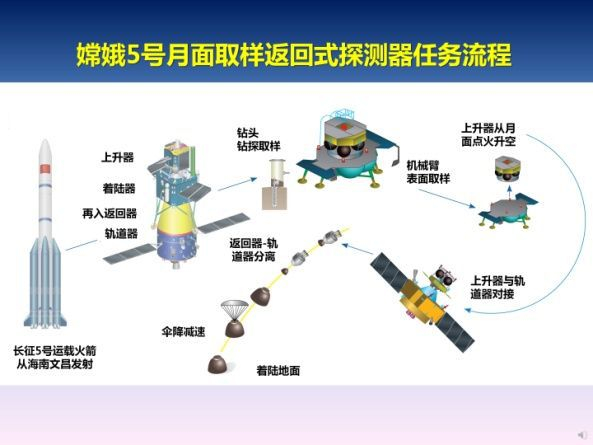 还有,携带月球样品的上升器起飞后,要在38万公里远的月球轨道与轨返组合体进行无人交会对接,把采集的样品转移到返回器中,这在世界上是第一次。