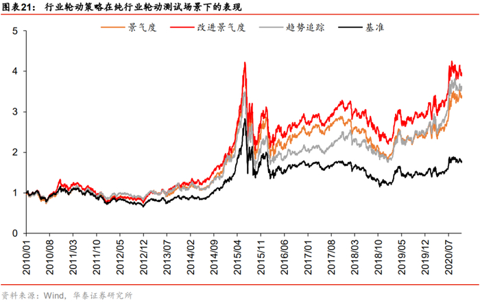 本文通过三类典型场景下的实证结果来综合评估行业轮动策略的表现
