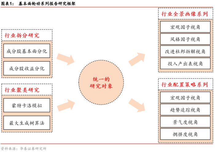 基本面轮动系列报告主要聚焦于中观层面行业轮动研究,在首篇报告《确立研究对象:行业拆分与聚类》(2020-03-03)中,我们进行了行业拆分和聚类研究,为后续系列报告确立了统一的研究对象;在系列报告二到五中,我们分别从宏观风险因子、中观风格因子、微观经营模式和产业链上下游关系四个视角进行行业画像分析,力求从不同维度对各行业的核心驱动因素进行梳理;在系列报告六到九中,我们分别从宏观因子、趋势追踪、景气度、拥挤度四个维度展开了具体的行业轮动策略开发。