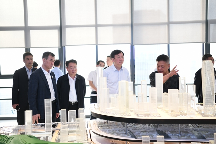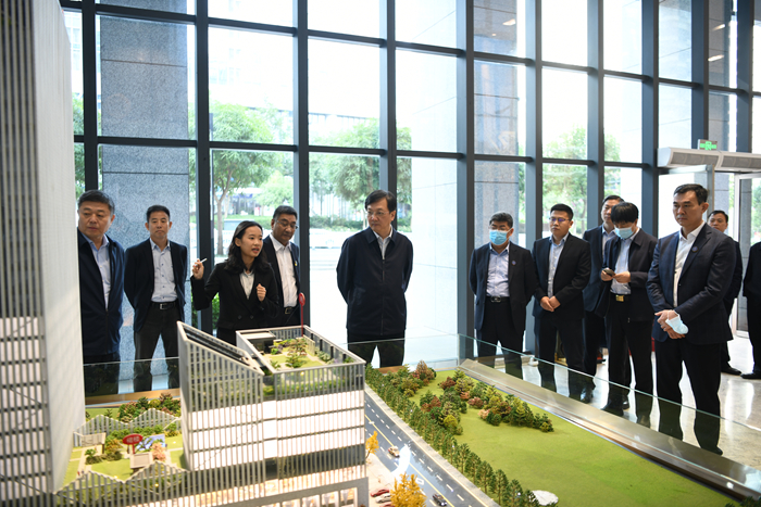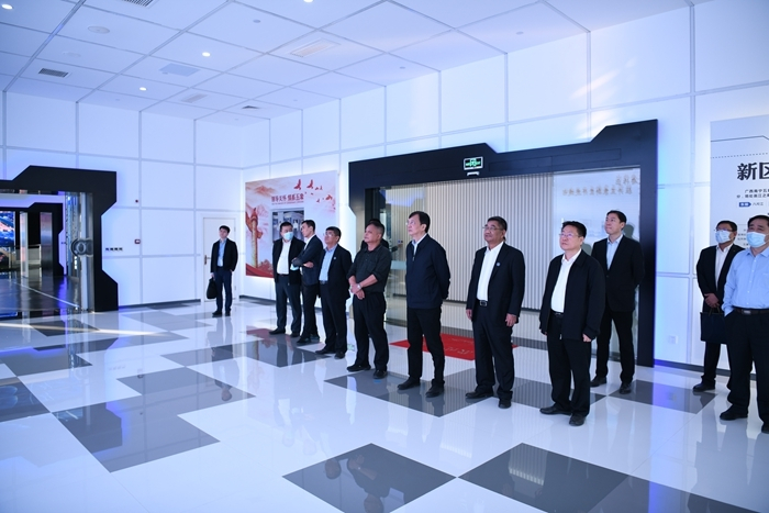 卢进一行首先来到中国冶金地质总局广西续宝矿业投资有限公司进行调研,现场考察了续宝大厦项目建设情况,并就推进重点项目建设和开展新项目合作等进行了深入交流。随后又前往五象新区规划展示厅,详细了解了五象新区近年来的发展变化和未来发展规划。