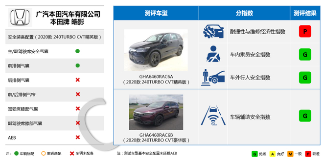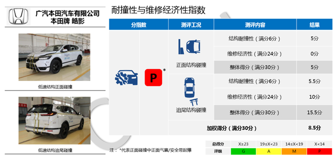 5款车型碰撞成绩:本田皓影耐撞性与维修经济性指数获较差评价