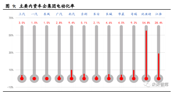 大车企还未加速电动化,大部分车企集团现阶段电动化率仍然较低。