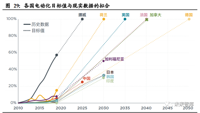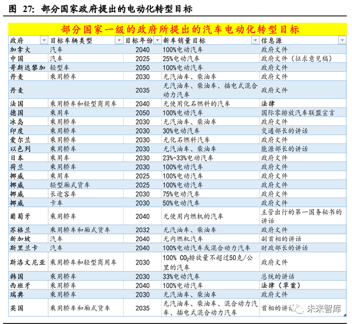 从减缓气候变化、改善空气质量、推动产业发展等角度出发,全球范围内已经有很 多政府,提出了汽车电动化转型目标。通过制定和实施具体的政策措施来克服电动 汽车推广所面临的核心壁垒,从而加速电动汽车市场的增长。