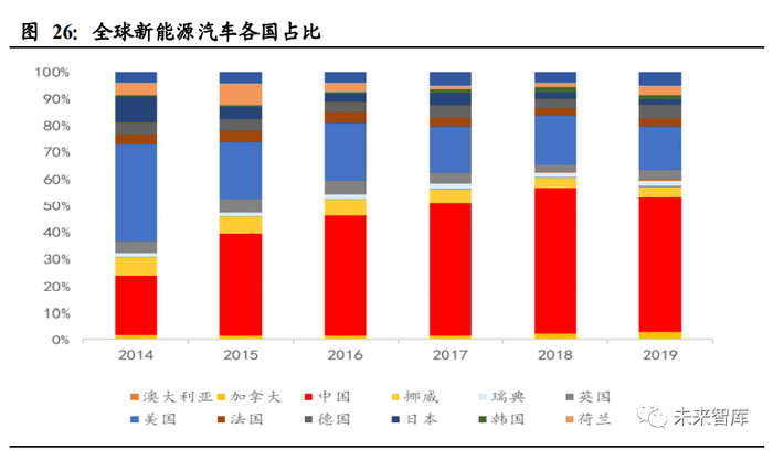2019 年全球新能源乘用车销量约为 210 万台,其中中国新能源乘用车销量约为 106 万台,美国新能源乘用车销量约为 32.7 万台,欧洲新能源乘用车销量约为 56.3 万 台,三个地区合计占全球销量 92.9%,为全球新能源汽车增长引擎。