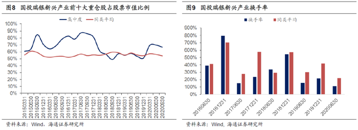 如国投瑞银新兴产业在食品饮料行业的第一大重仓股为绝味食品。在2018年3季报中,绝味食品便成为产品的前十大重仓股,至2020年3季度,其一直为产品前十大重仓股中唯一的一只食品饮料个股。基金经理近年来一直没有去追逐白酒和调味品等食品饮料行业中更为热门的一些个股。又如产品近年在电子行业中的第一大重仓股景旺电子,其同样是在2018年3季度中进入产品的前十大重仓股,相比一些热门的半导体或苹果产业链个股,其市场关注度同样较小。因此,基金经理这种不追逐热门个股的投资思路,使得产品的持仓与其他产品相比有一定差异化。