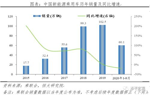 据乘联会统计,2019年、2020年1-9月我国新能源乘用车销量分别为102.5、60.1万辆,同比增速分别为3.2%和-19.3%。我们认为2019年及之后我国新能源乘用车增速下滑,除疫情造成公共出行需求减少之外,还有三方面因素: