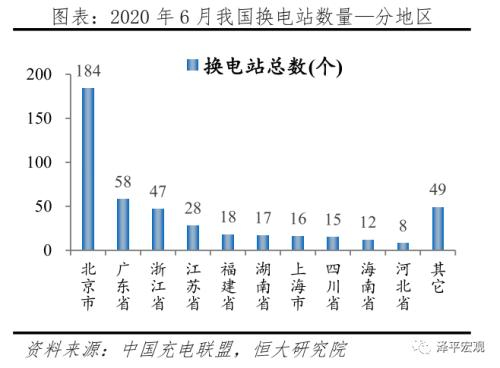 据中国充电联盟披露,截至2020年6月,我国换电站保有量452个;按企业分,奥动新能源222个、蔚来136个、伯坦科技94个;按地区分,TOP10省市分别为北京市184、广东省58、浙江省47、江苏省28、福建省18、湖南省17、上海市16、四川省15、海南省12、河北省8。