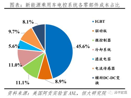 电机控制器不仅影响整车性能,其成本占比也高达5%以上,是新能源汽车极其重要的部分;其组成可进一步细分成,IGBT、驱动板、微控制器、冷却系统等;其中IGBT是电控核心关键零部件,起着功率转换的作用,而且成本占比接近50%;一般人们将IGBT模块比作汽车动力系统的“CPU”。
