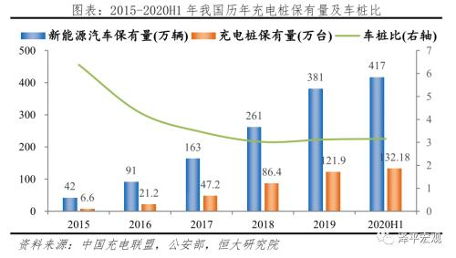 据中国充电联盟披露,我国充电桩保有量从2015年6.6万台增加到2020H1的132.2万台,累计增长超19倍;据公安部披露,我国新能源汽车保有量从2015年42万辆,增加到2020H1的417万辆,累计增长近9倍;对应车桩比从2015年6.4:1下降到2020H1年3.2:1,充电配套明显改善。从趋势上看,2018、2019、2020H1车桩比分别为3.0、3.1、3.2,近几年充电桩建设速度趋缓,车桩比较为稳定。
