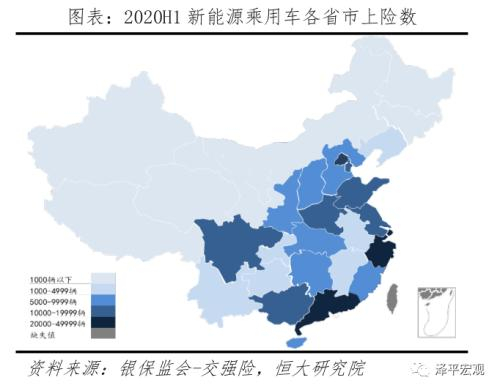 当前新能源乘用车主要集中在一二线、限牌城市。据乘用车交强险数据统计,2020年上半年中国新能源乘用车上险数29.8万辆,其中上险数TOP10城市分别为:北京、上海、深圳、广州、杭州、天津、成都、郑州、柳州、苏州;上险数分别为3.5、3.4、1.9、1.6、1.2、1.2、1.1、0.8、0.7、0.5万辆;对应市场占比分别为11.8%、11.3%、6.4%、5.5%、4.1%、4.0%、3.6%、2.6%、2.4%、1.7%,合计占比53.4%。其中前六名皆为限牌城市,合计占比43.1%。从区域分布来看,高度集中于东南地区。