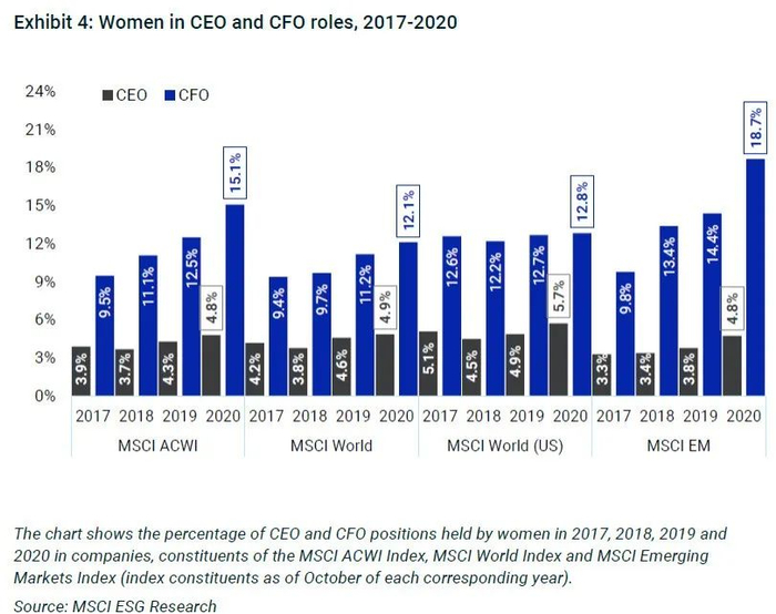 MSCI:新兴市场的女性CFO占比高于发达市场