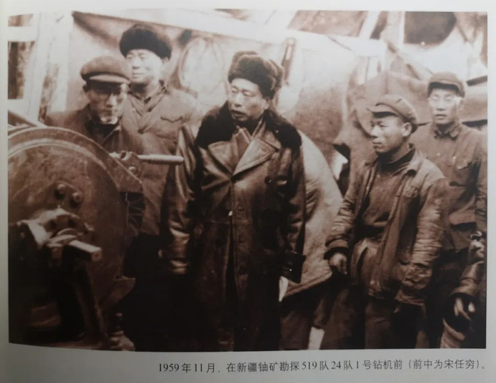 1955年初,519队获得伊犁盆地侏罗纪煤系含铀的线索。第一队曾在伊犁盆地南翼的达拉地开展普查找矿,不久便在深部发现隐伏的含铀煤矿床,这是新疆地区发现的第一个大型铀矿。1956年,新疆519队第24队找到产于晚古生代火山岩系中的白杨河铀矿床。这是我国首次发现的火山岩型铀矿床。白杨河矿床位于周围一二百公里的戈壁荒原上,条件异常艰苦。普查分队自己搭帐篷,挖地穴,住地窝,从几百里外运粮,一个月只吃几次菜,所有探矿设备全靠人拉肩扛。就是靠这种“白杨河”精神,不到一年队伍就发展成一支新疆铀矿地质的主力军。《纪念宋任穷诞辰一百周年——宋任穷画传》里有几张照片,展示了时任核工业第一任部长的宋任穷于1959年11月到白杨河矿点检查工作的情形。当时,为了重抓铀矿工作,他经常跟随地质队出没于戈壁沙漠,爬山涉水,风餐露宿,几乎全国所有的铀矿地质勘探队作业点,都出现过他的身影。他的足迹甚至到达过新疆最偏远的地方——阿尔泰地区。