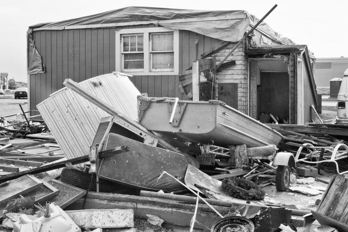尽管离发送信息的时间不久,但仓库的部分屋顶已被掀起,大雨从那里横扫进来,仓库开始浸水。