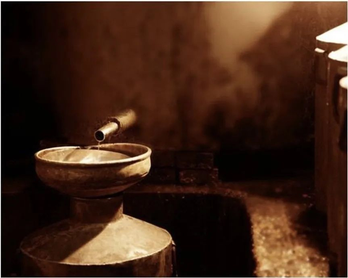两次投料后开始蒸煮,因为红缨子高粱有着皮厚、支链淀粉和单宁含量高的特点,需要每隔一个月进行一次蒸煮,在一个生产周期内要反复蒸煮九次。