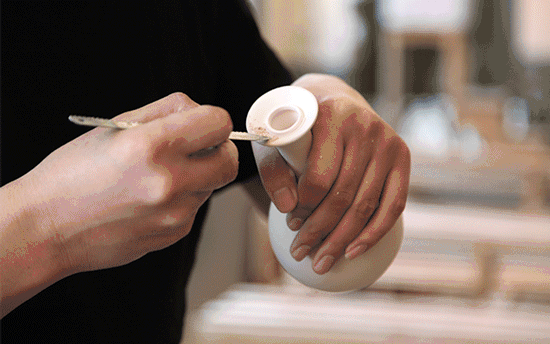 复刻的过程并不轻松,由于考虑到坯土在烧制过程中的收缩性,他拉了至少 50 种坯,逐个标记对比。