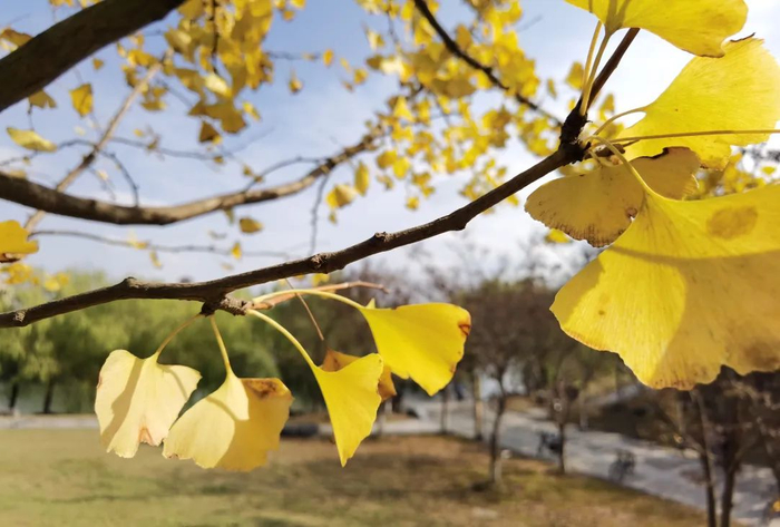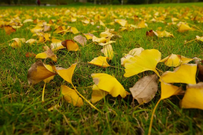 在健康园,金黄悄悄吻上叶缘,随着阵阵风蔓延满眼,最后似蝶翩翩飞落。悄悄的,满地翻黄银杏叶,留下所有美好,滋养着大地。