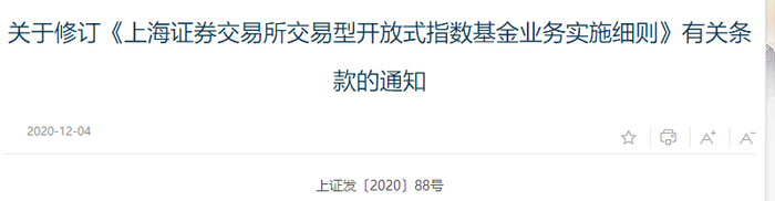 财联社(上海,记者 韩理)讯,12月4日,上交所和深交所分别发布了修订后的《上海证券交易所交易型开放式指数基金业务实施细则》和《深圳证券投资基金交易和申购赎回实施细则》。