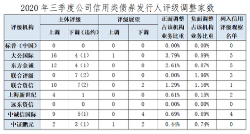 涉及个别信用评级机构方面,根据通报结果,其中更换评级机构后的级别高于原级别的发行人家数同比增加,大公国际上调家数最多。