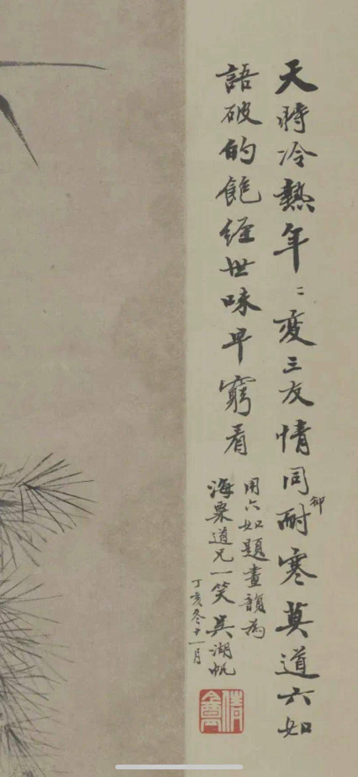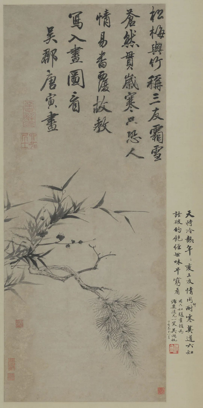 上海刘海粟美术馆馆藏《岁寒三友图》上还有吴湖帆的题诗