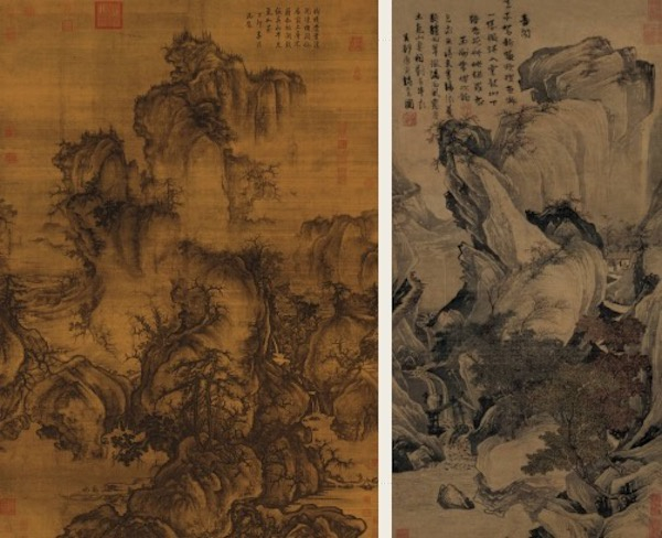 唐寅秋风纨扇图 上海博物馆藏 左:宋郭熙 早春图 台北故宫博物院藏;右:明 唐寅 骑驴归思图 上博藏接着,又通过对唐寅多本《金阊送别图卷》《别号图》等书籍对明代艺术市场予以解析,并由此引发对其花鸟和人物画作品的探讨。最后又回到馆藏的《岁寒三友图》。