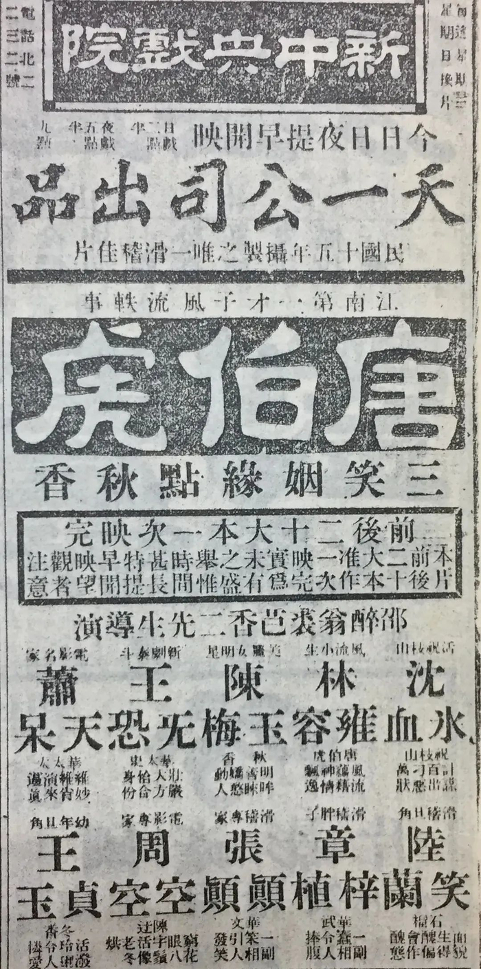 1926年天一公司《唐伯虎三笑姻缘》 广告