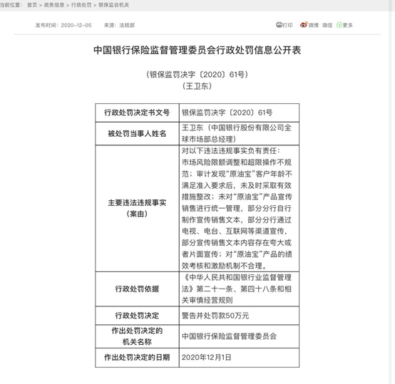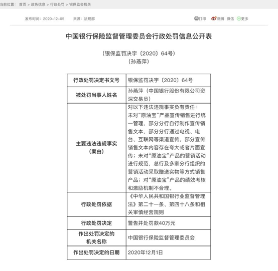 中行“原油宝”事件又有最新进展,监管祭出重拳严处罚。
