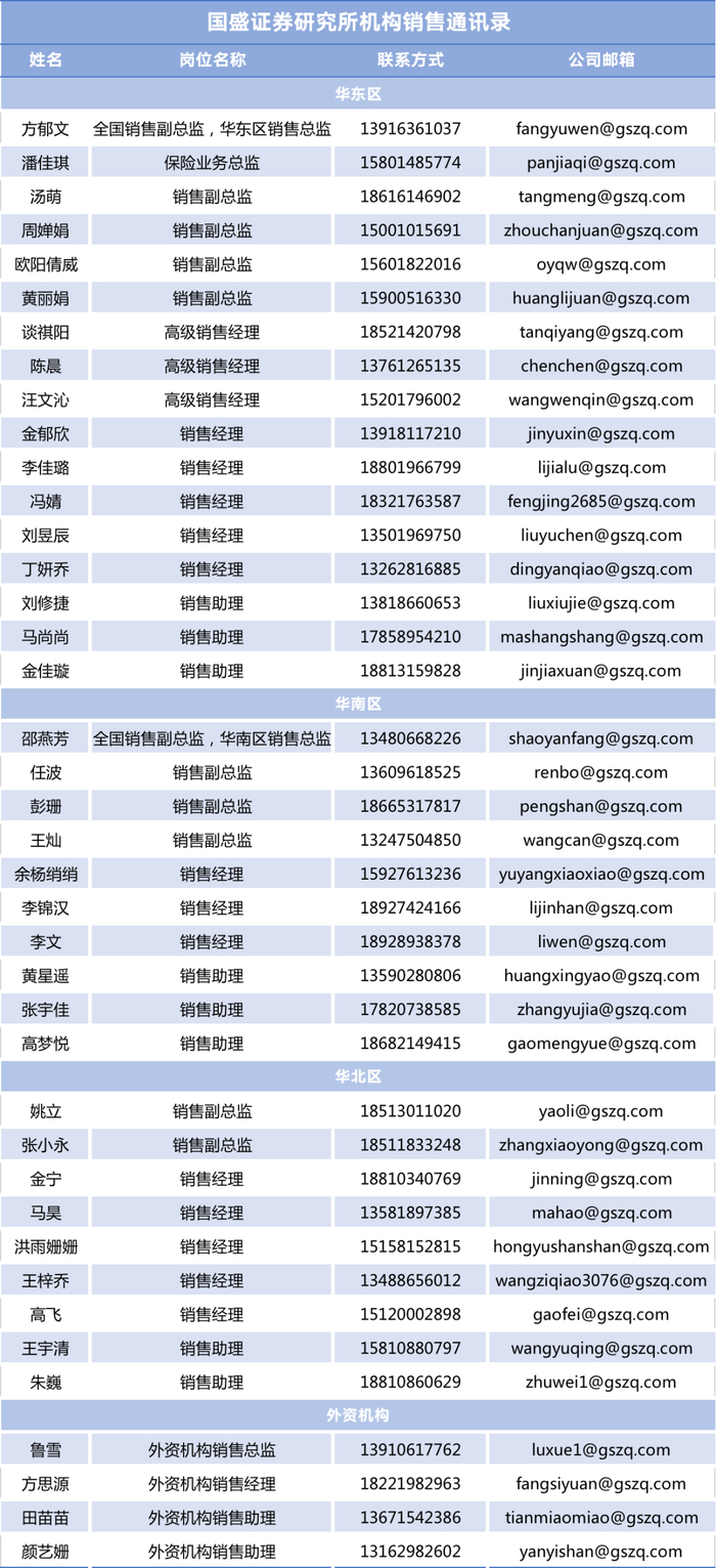 2、本资料仅代表报告发布当日的判断,相关的研究观点可根据国盛证券后续发布的研究报告在不发出通知的情形下作出更改,本订阅号不承担更新推送信息或另行通知义务,后续更新信息请以国盛证券正式发布的研究报告为准。