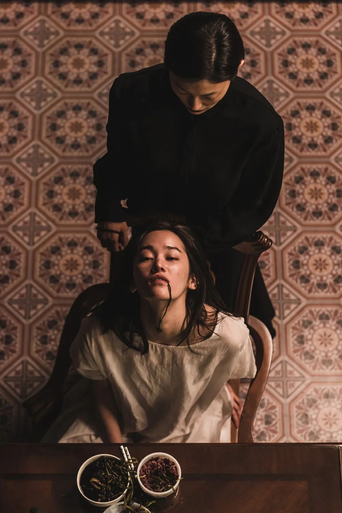 《电话》亦营造了这样的暗黑氛围,一边是狰狞狂妄的英淑,连吃炸鸡的样子都那么瘆人,一边是冬日韩国农村的肃杀景象,无论警察还是书妍的亲友都像待宰的鸡一样脆弱。影片中触发英淑疯狂本性的养母之死,很贴合近年来的韩影潮流,表现了在韩国土地上生生不息的萨满传统。女巫养母长期以来囚禁英淑,时不时对她做法驱魔,更添乡间大宅的阴森气息。可惜本片不以萨满传统为切入点,神秘法术治愈不了反社会人格。